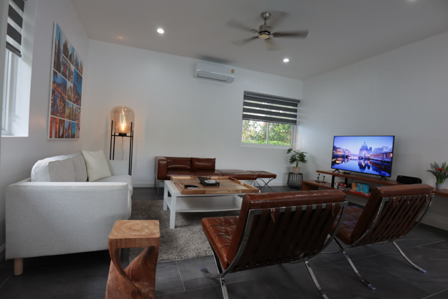 The living room is also air-conditioned, has plenty of comfortable seating and a big smart netflix enabled tv.High speed fiber internet is free for your use with good wifi signal throught the villa.